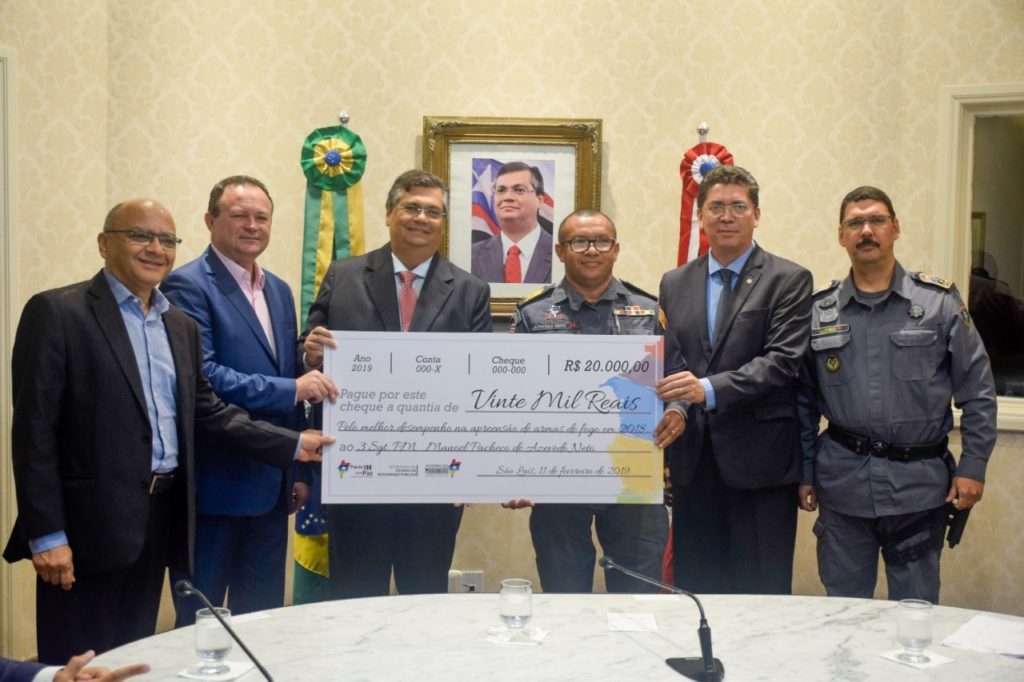 A premiação foi entregue pelo governador, em solenidade no Salão de Atos do Palácio dos Leões, na manhã desta segunda-feira (11), e contou com a presenças de policiais, familiares e secretários de Estado. O objetivo é estimular e valorizar a polícia do Maranhão, e contribuir para a redução de armas ilegais nas ruas.