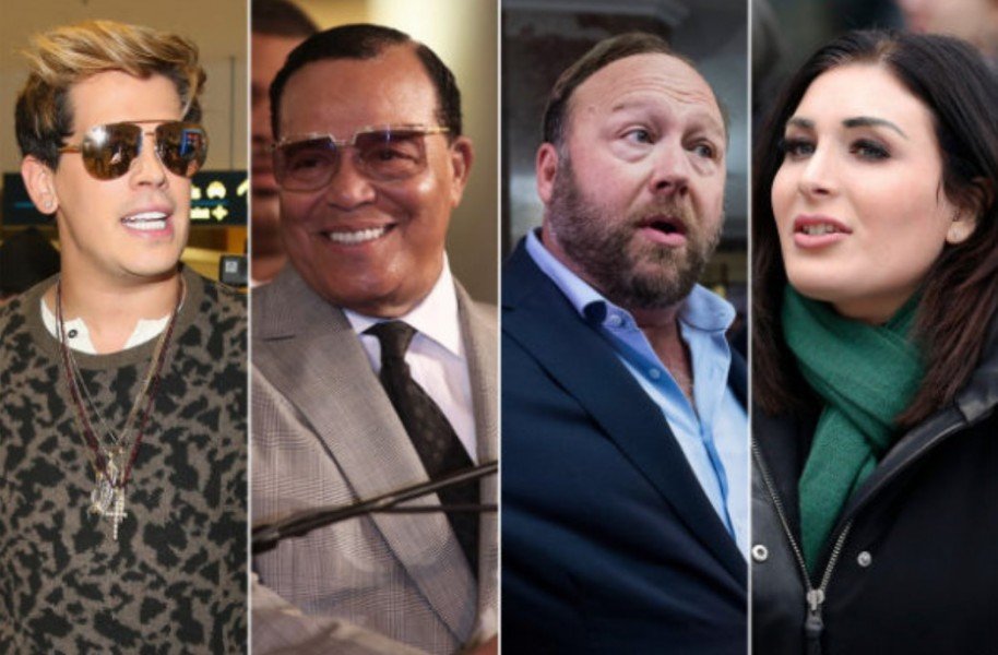 Entre as personalidades que perderam suas contas temos os militantes de direita Milo Yiannopoulos, Paul Joseph Watson e Laura Loomer; o editor do Infowars, Alex Jones; o supremacistas branco Paul Nehlen; e o líder do movimento Nação de Islã, Louis Farrakhan.