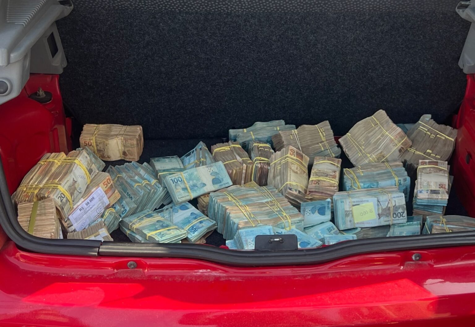 Ao chegar no local, a equipe policial constatou que no porta-malas do automóvel havia muito dinheiro, algo em torno de R$ 2 milhão de reais.