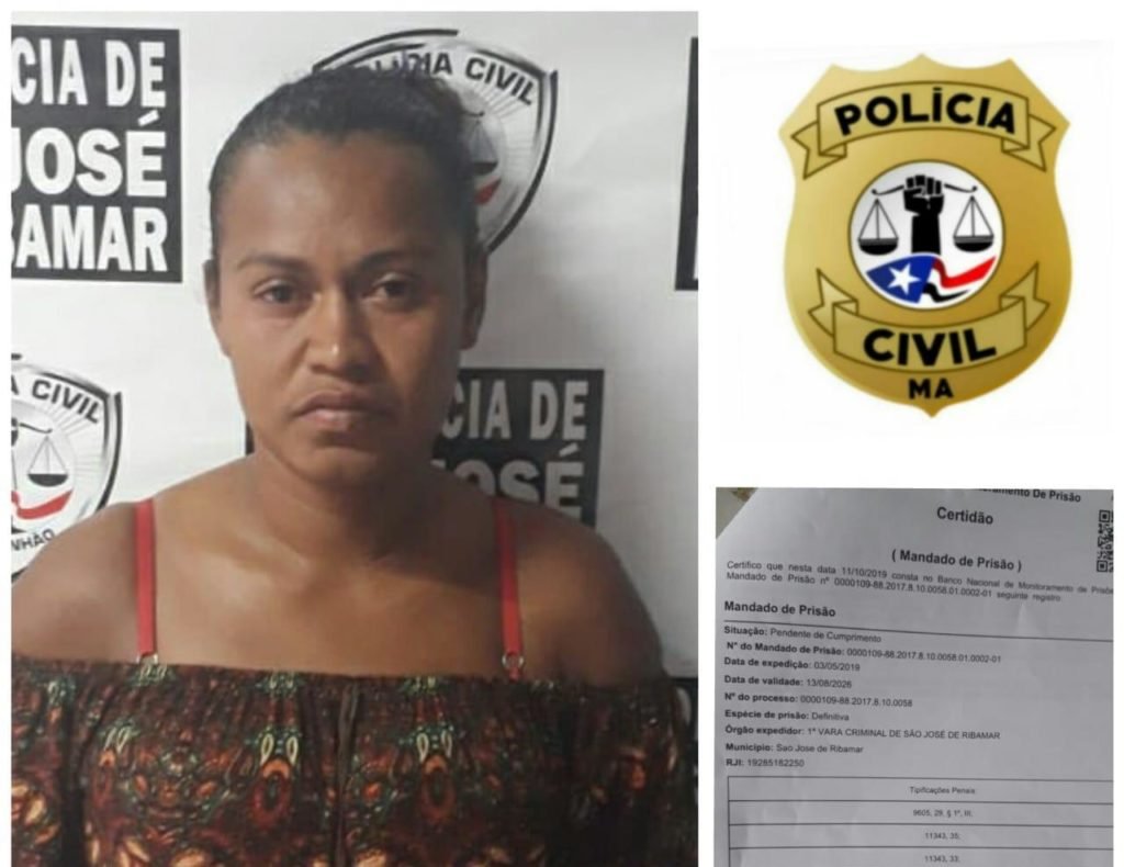 A Polícia Civil, por intermédio da Superintendência de Polícia Civil da Capital – SPCC (Seccional Leste e Depol São José de Ribamar), realizou, na tarde de hoje (12.10.19), o cumprimento de Mandado de Prisão decorrente de Sentença Condenatória em desfavor de ANTONIETA SANTOS GOUVEIA, v. Toinha (29), pela prática do crime de TRÁFICO DE DROGAS e ASSOCIAÇÃO PARA O TRÁFICO( ART. 33 e 35 da Lei 11343/06) .