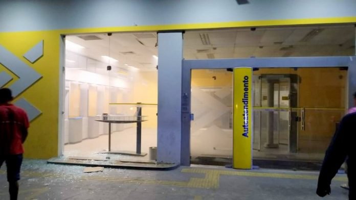 Os bandidos destruíram as agências com o uso de explosivos. Muitos tiros foram
