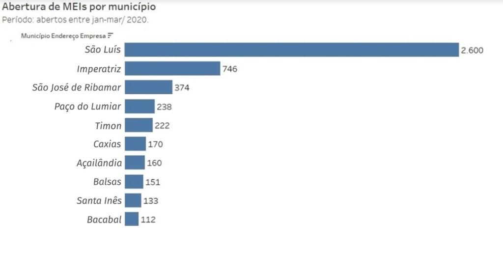 O detalhamento da estatística mostra que entre as cidades com maior número de microempreendedores individuais, São Luís é a que mais concentra o número de formalizações com 2.600 MEIs, seguida de Imperatriz com 746, São José de Ribamar com 374, Paço do Lumiar com 238 e Timon com 222 negócios na categoria.