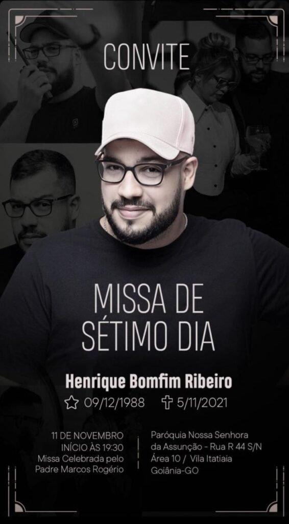 Segundo infrmações publicadas no perfil pessoal de Vanucci no instagram, a celebração da missa será realizada pelo Padre Marcos Rogério, na Paróquia Nossa Senhora  da Assunção. ” Passando para informar sobre a missa de sétimo dia do nosso irmão Henrique Bomfim Ribeiro”, informou Rafael, que é empresário artítstico e, também, filho da cantora Vanusa.