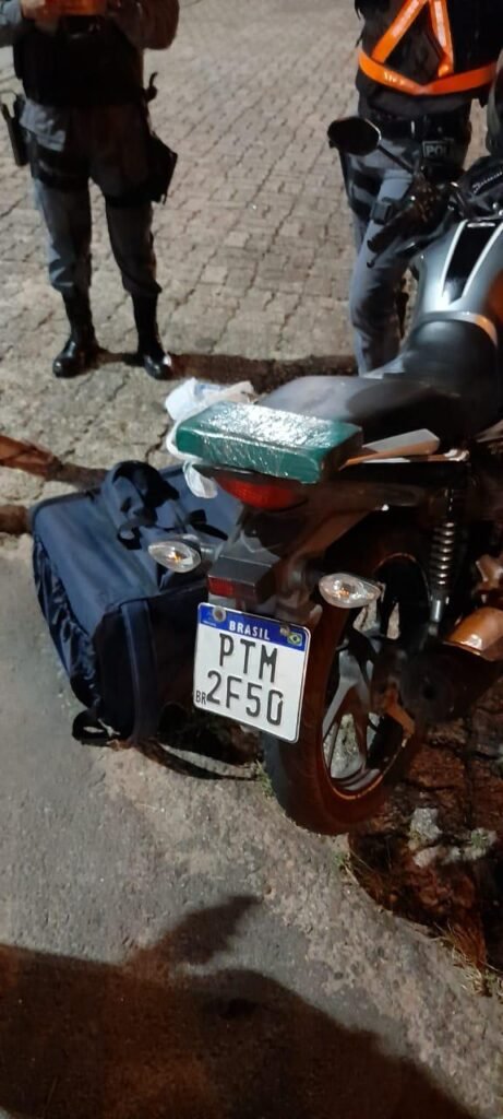 De acordo com informações do Centro Integrado de Operações de Segurança (Ciops), policiais militares do 8° Batalhão de Polícia Militar (8°BPM) solicitaram que o suspeito que estava na motocicleta descesse do veículo. Após revista pessoal e na Honda CG 160, de placa PTM-2F50, foi encontrado um tijolo de entorpecente semelhante a cocaína.