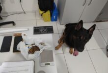 Com o acusado a polícia encontrou 27 pinos de cocaína, 5 cabeças de cocaína, uma porção de maconha, além de material  para embalagem de drogas, celulares e uma quantia em dinheiro.