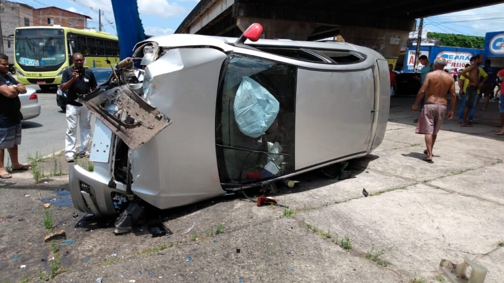 Na Avenida dos Franceses, um motorista capotou o veículo no elevado Alcione Nazaré. Segundo a Polícia Militar, o condutor que não teve a identidade revelada, cochilou ao volante e capotou o veículo parando após colidir com um poste das câmeras de monitoramento do CIOPS.