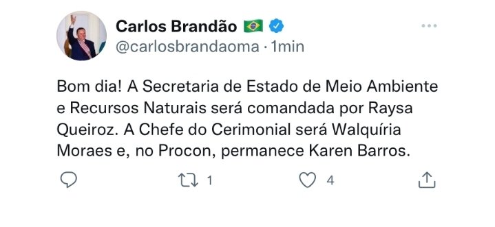 O governador Carlos Brandão (PSB), iniciou esta manhã fazendo novos anúncios da sua equipe de secretariado. Para comandar a secretaria de Meio Ambiente e Recursos Naturais, o socilista escalou a advogada Raysa Qieuroz.