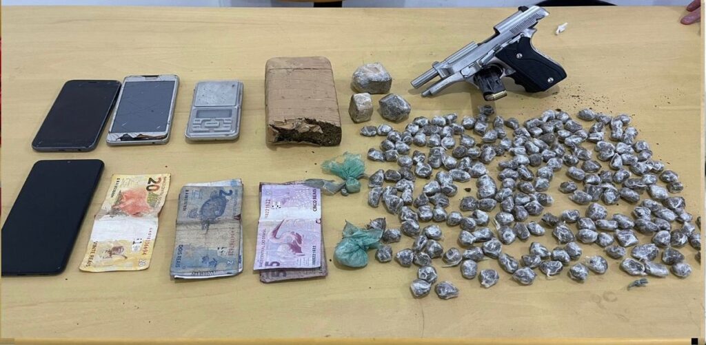 Os policiais receberam denúncias que o casal seria responsável pelo comércio de entorpecentes. Uma casa servia como ‘boca de fumo’, onde todo material ilícito era armazenado e vendido. Ao chegar no local, os investigadores flagraram os indivíduos com uma grande quantidade de maconha, cocaína e crack prontos para serem comercializadas, além de uma pistola.