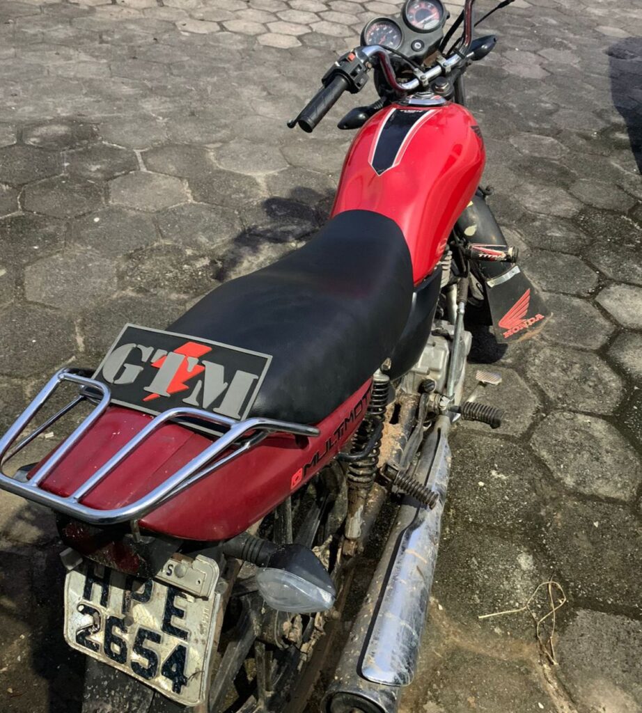 A guarnição da área estava realizando patrulhamento preventivo, quando avistou um indivíduo uma Honda Titan 125, de cor vermelha, placa HPE-2664, tentou empreender fuga ao perceber a presença policial. O suspeito foi interceptado e realizado busca pessoal com o homem, porém nada foi encontrado. Em consulta ao sistema de segurança, foi confirmado que a motocicleta havia sido tomada de assalto pela manhã no bairro Armindo Reis.
