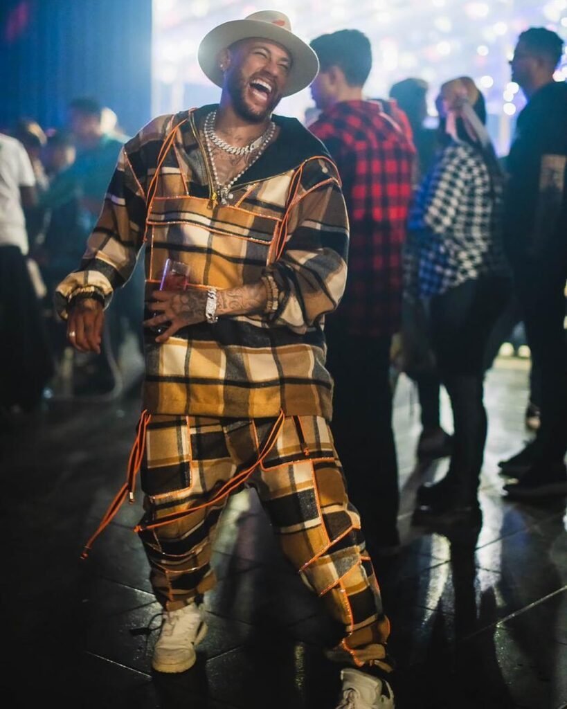A imagem de Neymar sorrindo, dançando, dentro de uma roupa larga, de chapéu, e segurando um copo de bebida, foi feita por um amigo.