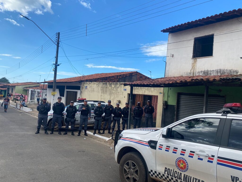 O policiamento a pé e radiomotorizado empregado no evento, garantiu um clima de segurança e tranquilidade para a multidão de brincantes do início ao término do desfile do Batalhão Pesado da Maioba.