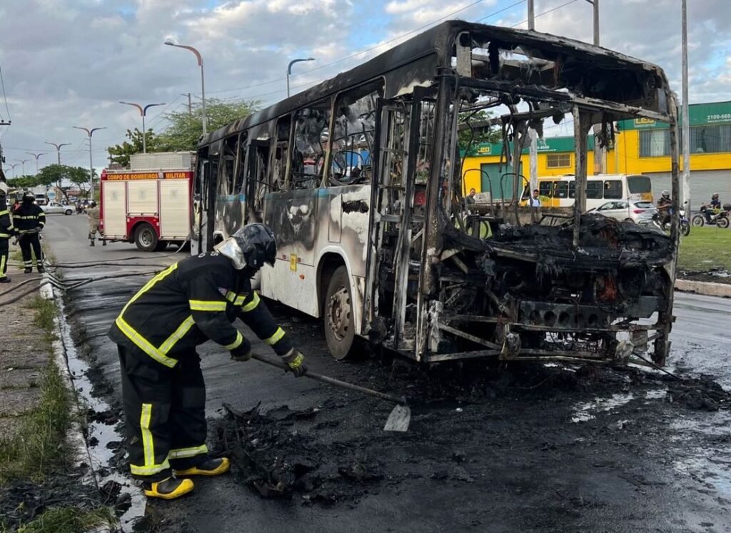Duas equipes do Corpo de Bombeiro Militar do Maranhão (CBMMA) conseguiram controlar o fogo e um reboque já removeu o ônibus da faixa central da pista.