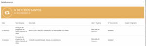 Os dados da Receita Federal apontam que a N de O dos Santos foi criada 29 de julho deste ano, ou seja, cerca de 15 dias antes do início da campanha eleitoral permitida pela Justiça Eleitoral, que teve início no último dia 16 de agosto.