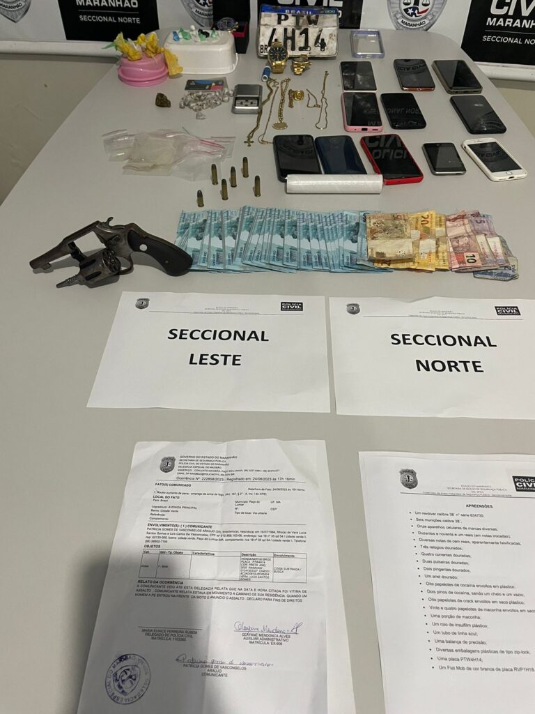 A Polícia Civil, por intermédio da Superintendência de Polícia Civil da Capital, em ação coordenada pelas Seccionais Norte e Leste, efetuou a prisão de grupo criminoso suspeito de cometer roubo a uma loja de aparelhos celulares situada no conjunto Parque Vitória.