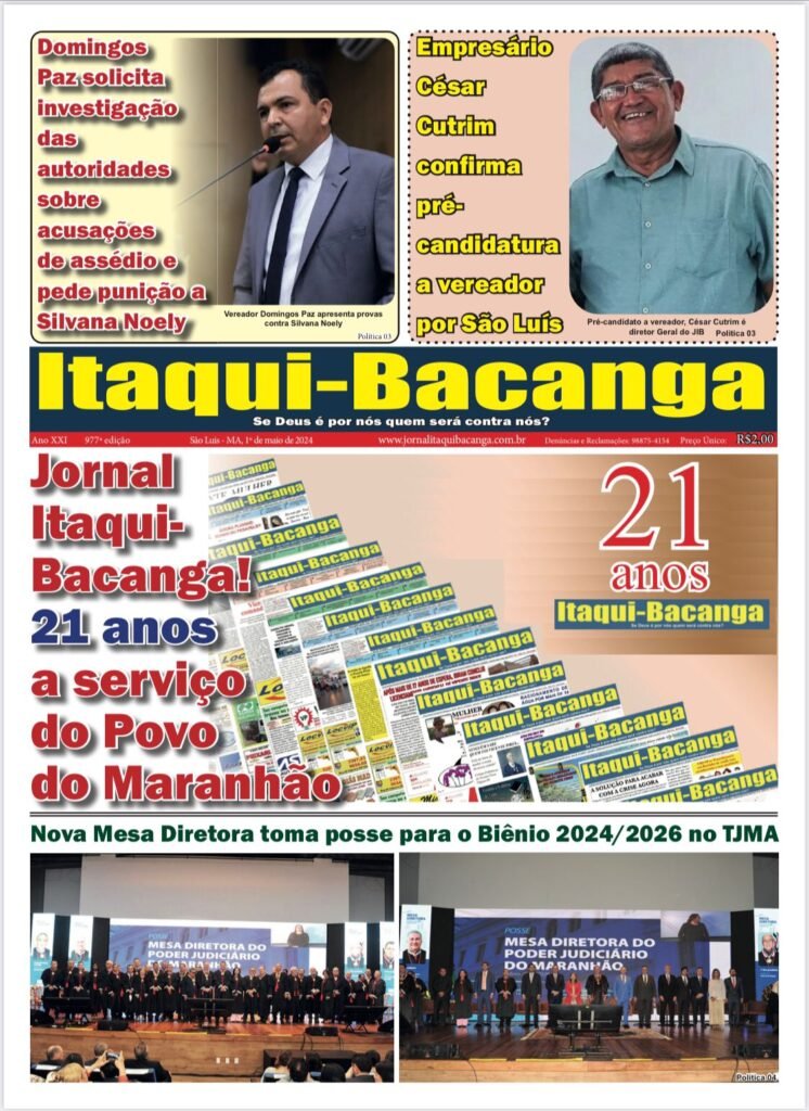 No memorável dia 1° de maio de 2024, passava a circular o primeiro jornal que atingia todas as camadas da sociedade. Trazendo no caderno a notícia ‘nua e crua’ sem arrodeios, o JIB passou a ser um dos mais comercializados na Grande Ilha de São Luís.