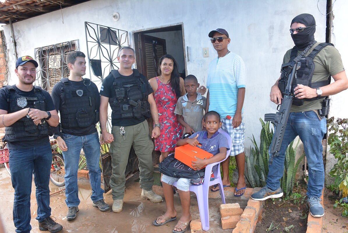 Em uma ação filantrópica, a Superintendência Estadual de Investigações Criminais (Seic) entregou, na tarde desta segunda-feira (10), um par de tênis e uma mochila a Gabriel dos Santos Martins Ramos, de 9 anos, no Residencial Primavera, região da Vila Embratel, em São Luís. O garoto, que estuda na UEB Ensino Fundamental Lindalva Teotonia Nunes, na área Itaqui-Bacanga, estava precisando de um calçado, pois sua família é carente.