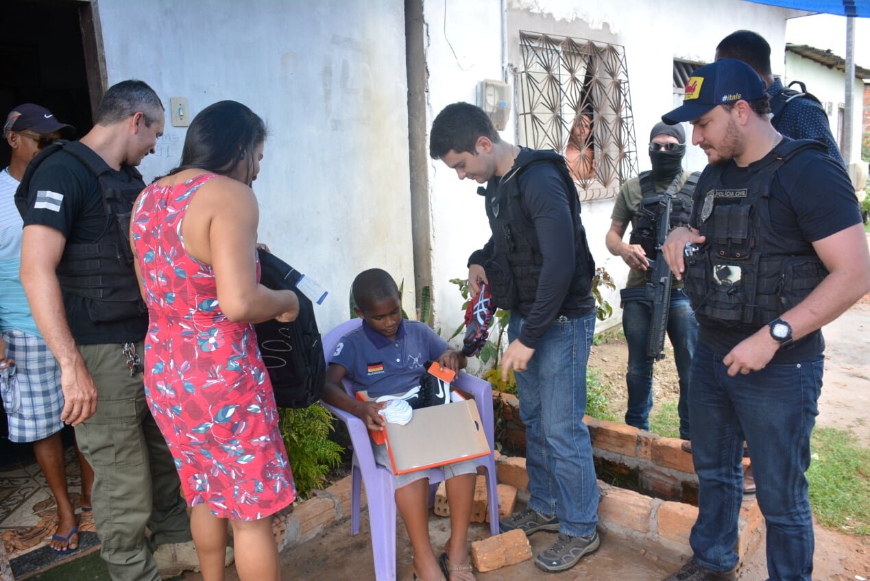 Os policiais fizeram a entrega dos materiais na residência onde o menino mora