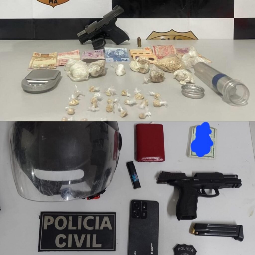 E na sexta-feira, 17, a Delegacia de Roubos e Furtos – DRF, juntamente com a Delegacia de Roubos e Furtos de Veículos – DRFV, com apoio operacional da Seccional Oeste e DICRIF/SEIC, realizou operação que resultou na prisão de dois elementos acusados do roubo de um veículo e joias no interior de um shopping center na capital no dia 10.05.2024. As prisões foram realizadas na Avenida Litorânea e na Avenida dos Holandeses, no calhau, tendo sido os autores atuados em flagrante delito pelo crime de posse ilegal de arma de fogo, em virtude de ter sido encontrados uma pistola calibre .40, 12 projéteis de arma de fogo, além de uma motocicleta sem placa. Contra o primeiro elemento ainda foram cumpridos dois mandados de prisão, uma por homicídio em Imperatriz/Ma e outra por tráfico de drogas em Teresina/PI, e contra o segundo elemento foi cumprido mandado de prisão por violência doméstica na capital.