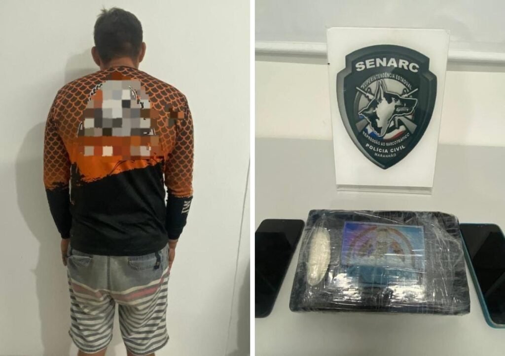 Um homem foi preso em flagrante por tráfico de drogas na localidade de Cumbique, no município de Raposa, na última sexta-feira (5). A ação foi realizada por equipes da Superintendência Estadual de Repressão ao Narcotráfico (SENARC), após o recebimento de uma denúncia anônima.