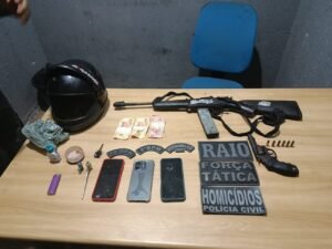Durante a ação policial, cinco pessoas foram detidas, entre elas um adolescente. Com os suspeitos, a PM encontrou uma arma de fogo, munições, uma espingarda caseira, pedras de crack, dois cachimbos para consumo de entorpecentes e uma motocicleta, que seria a mesma utilizada no crime.
