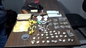 De acordo com informações da corporação, os suspeitos foram localizados em diferentes residências da comunidade. Durante a ação, os policiais apreenderam uma arma de fogo de fabricação caseira, entorpecentes e aparelhos celulares.