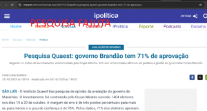 Mais uma vez, o chamado Sistema Mirante, ou melhor dizendo, sistema mentira de comunicação, tenta enganar os maranhenses ao divulgar, nesta terça-feira (28), uma pesquisa encomendada ao Instituto Quaest sobre a avaliação do governo do oligarca Carlos Brandão (sem partido).