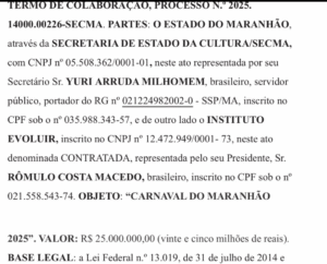 De acordo com o deputado Rodrigo Lago, que levou o caso à tribuna, a produtora Y98 teria intermediado repasses milionários ao Instituto Evoluir, responsável pela execução da maior parte do Carnaval realizado no Circuito Litorânea, em São Luís.