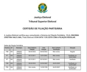 Conforme certidão de filiação de Iracema Vale, observa-se que, após exatos 13 dias em que Aluísio Mendes assumiu a função de vice-líder do governo Bolsonaro, ela deixou o Partido dos Trabalhadores e migrou para outra legenda.