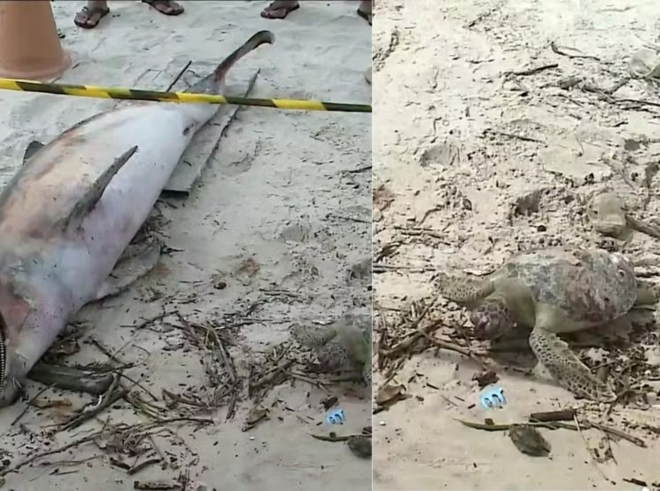O caso mais recente foi registrado na Praia do Caolho, na capital, onde uma tartaruga-verde e um boto da espécie Sotalia guianensis foram encontrados mortos na faixa de areia. A área foi isolada por guarda-vidas da Guarda Municipal até a chegada das equipes responsáveis.