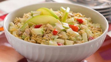 Ingredientes: 2 talos de salsão ralado ½ xícara (chá) de uva-passa branca ½ xícara (chá) de nozes picadas 2 maçãs…