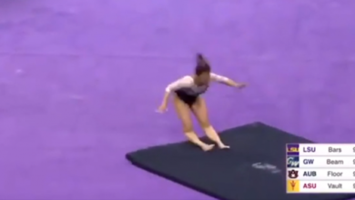 Na última sexta-feira (5), a ginasta Sam Cerio quebrou as duas pernas durante o NCAA gymnastics, campeonato universitário de…