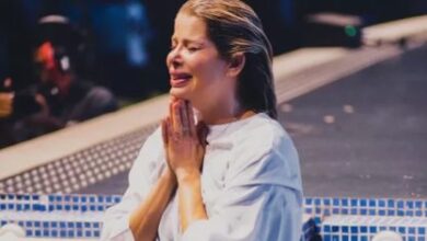 Karina Bacchi se emociona ao ser batizada em igreja: ‘Planos de Deus’