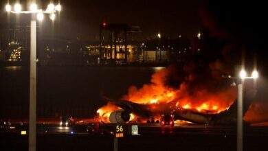 Avião com mais de 300 passageiros a bordo pega fogo no Japão