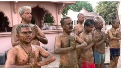 No estado de Gujarat, na Índia, pessoas têm ido a currais semanalmente para tomar banho de esterco de vaca em…