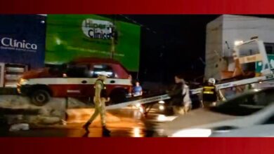 Veículo de autoescola fica pendurado em mureta de elevado na Cohab